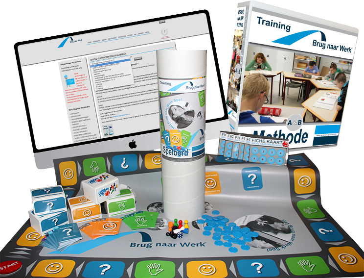 € 835,00 startpakket op twee trainingsniveau's (Brug naar Werk en Ken Jezelf spel, Methodeboek A/B, werkboek en ken jezelfboekje op twee trainingsniveau's);