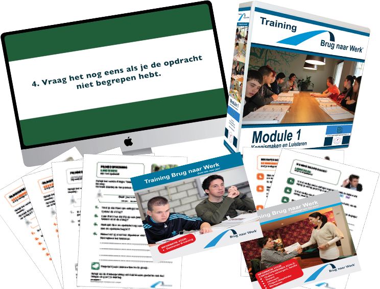 - officiele Brug naar Werk folder voor de deelnemer op basis van het gevraagde Brug naar Werk-niveau en module;