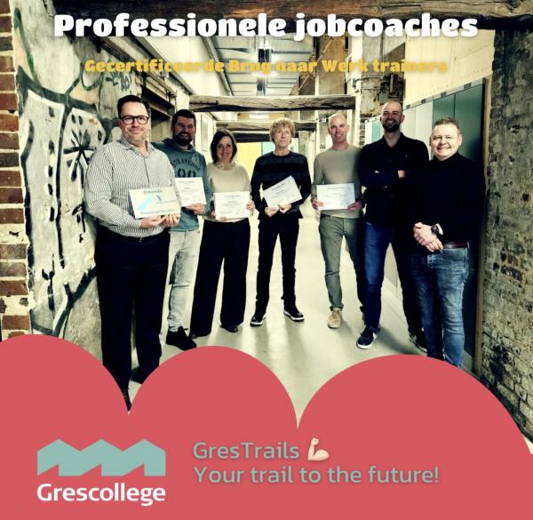 Mark van de Mortel (directeur Grescollege), Ralf Houx (docent/jobcoach en gecertificeerd Brug naar Werk trainer), Gerrianne Evers (docent/jobcoach en gecertificeerd Brug naar Werk trainer), Robbert Tobben (docent/jobcoache en gecertificeerd Brug naar Werk trainer), Ruud Kessels (docent/jobcoach, gecertificeerd Brug naar Werk trainer en coördinator Grestrails, waarvan de methode Brug naar Werk een onderdeel is), Paul Veelen (teamleider) en René Heijmans (directeur en auteur van de methode ‘Training Brug naar Werk’).